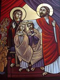 The Bride went out to greet her Groom on the night of the marriage. The rituals were followed. AND the festivities began. Everyone was happy and by the third day many people showed up some unexpectedly, like Jesus. Jesus and his mom were expected but they weren't aware that Jesus would bring twelve friends to boot and guys who apparently ate and drank quite a bit. The fact of the matter many unexpected guests showed up. so that the party ran out of wine. Mary, she wasn't quite a Yenta, but she noticed that there seemed to be some trouble in paradise, so she sauntered over to eavesdrop and learned that the newly weds were going to be laughed at and derided because they ran out of wine. She wanted to help but she didn't have the money to buy all the wine that was needed. She wanted to do something and didn't quite know what to do but she promised the couple that with a little patience everything would be OK. What else could she do but go to her son for help? She remembered how she was told she was going to give birth. She remembered how Joseph had to flee with them into Egypt because that crazy Herod wanted to kill her baby. She remembered how Jesus was lost in Jerusalem when he was 12 and when he was found he was confounding the scholars of the temple. She knew he prayed a lot and seemed to have a solution for every problem they encountered after Joseph passed on. She knew he was going out now to preach the word of God and love. She didn't know quite how he was going to fix this but she had faith he could fix anything if he wanted. So she sought him out and found him laughing and sharing stories and jokes with his 12 companions.